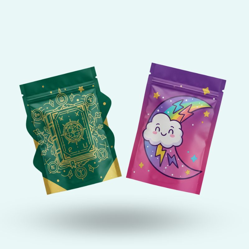 Make a lasting impression with cool Mylar bag designs customized to your brand identity. Our custom printed Mylar bags not only attract customers but also maintain product integrity with high-quality barrier protection.