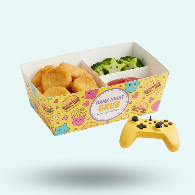 | Large Food Tray | 9″ x 6″ x 2.5″ | Paperboard | Glossy/Matte Finish |