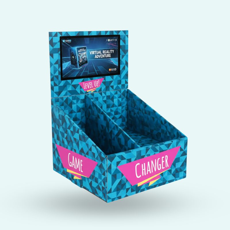Enhance your marketing efforts with custom corrugated displays that create an eye-catching presence in stores. With high-resolution custom retail boxes and sturdy construction, our counter display boxes help improve product visibility, reinforcing your brand identity.
